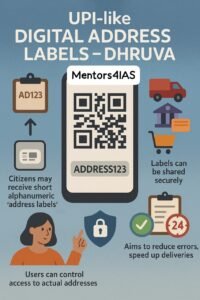 NEWS – The Department of Posts has proposed a major digital reform in India’s addressing ecosystem by introducing DHRUVA (Digital Hub for Reference and Unique Virtual Address). It aims to make address-sharing as simple as sharing a UPI ID, using short, standardised address “labels”.