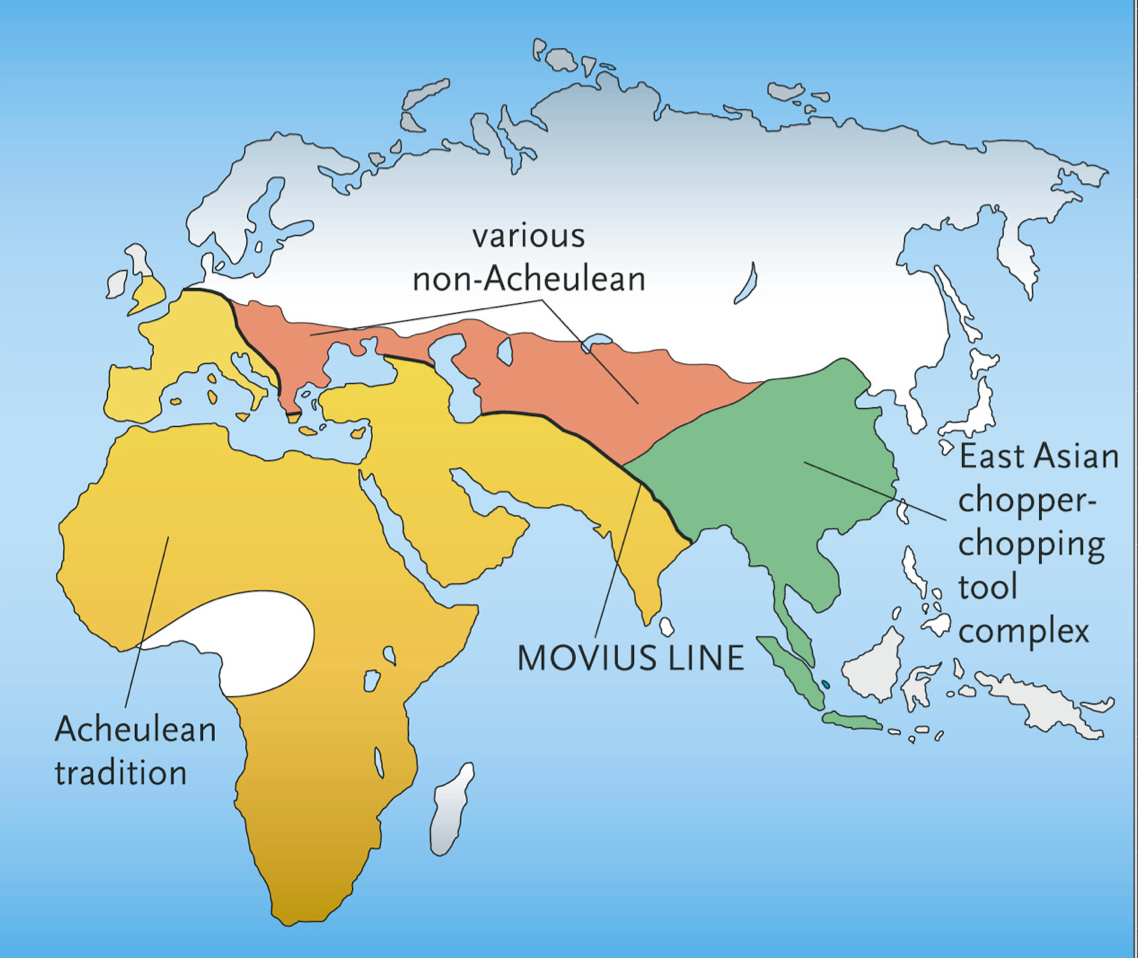 - Western Old World (Africa, Europe, India) → Acheulian handaxe tradition